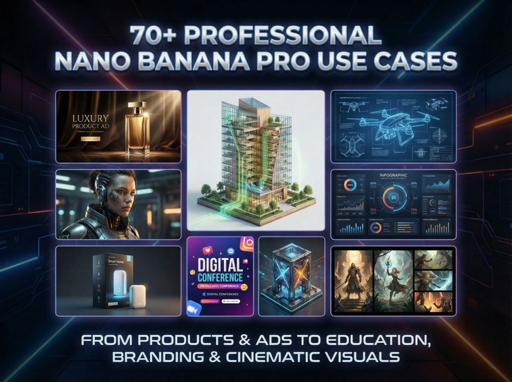 This guide now includes 90+ real-world, production-ready use cases for Nano Banana Pro covering everything from product ads and cinematic scenes to infographics, branding, architectural visuals, storyboards, and business-ready design workflows.