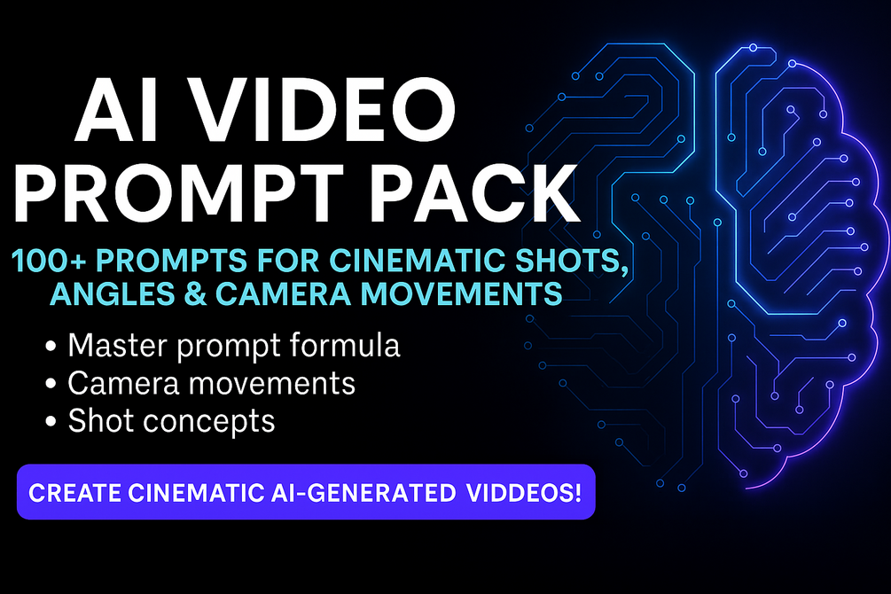 This AI Video Prompt Pack gives you structured prompts, angles, and movement styles you can plug directly into tools like Google VEO, Sora, Pika, Runway, Kling, PixVerse, and more.